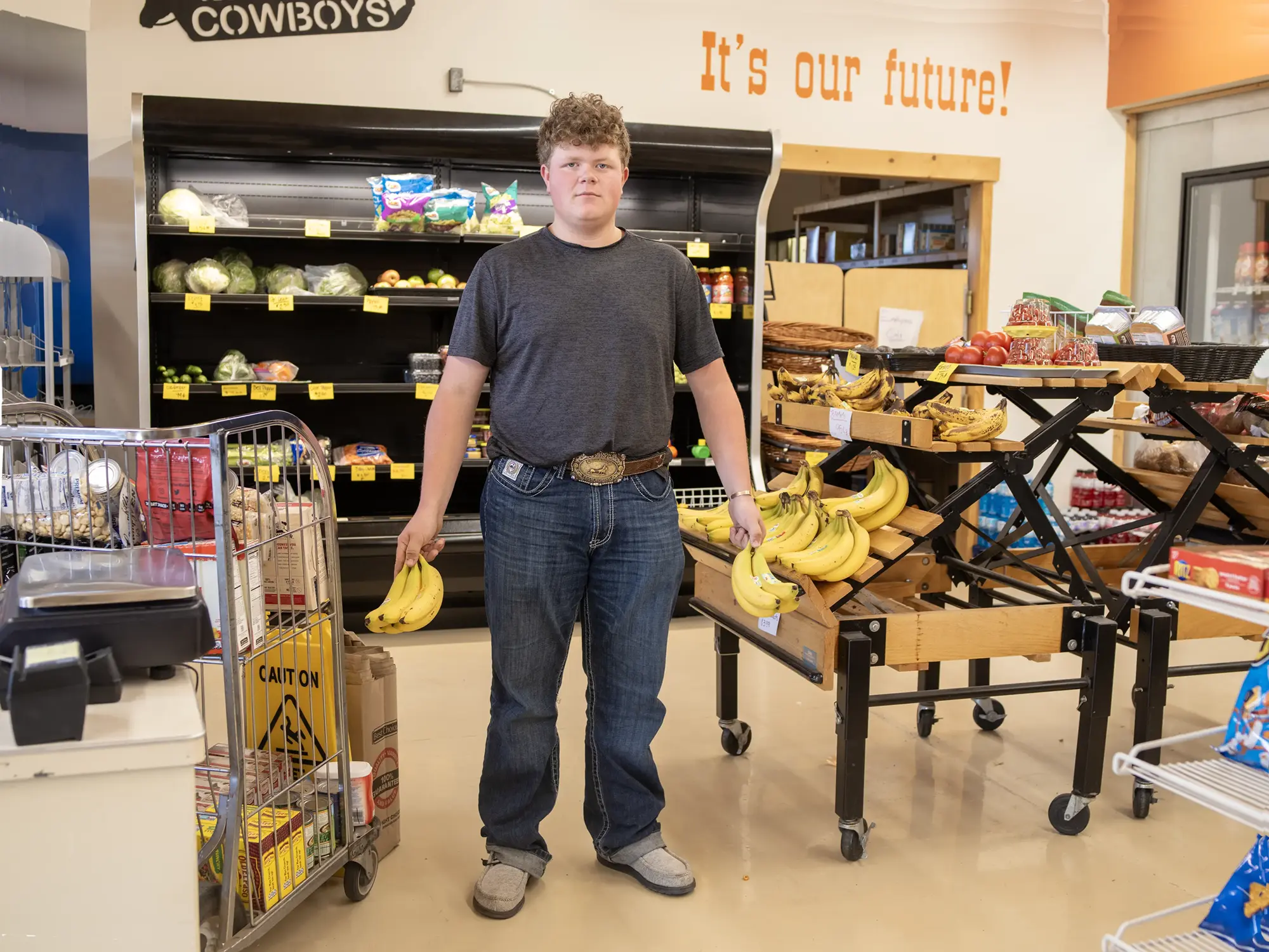 Keifer with bananas, Cody, Wyoming