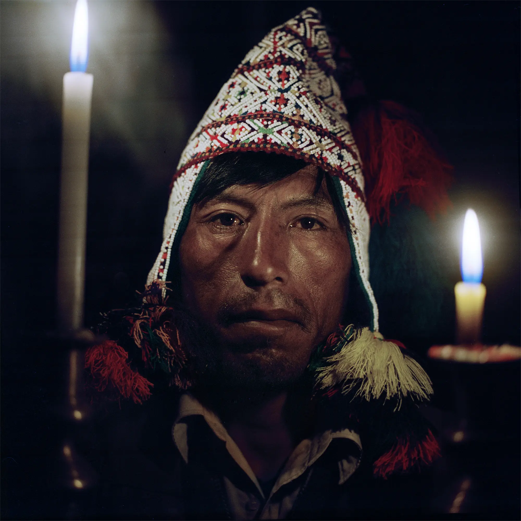 During an organic chemistry class, I was intrigued when the professor explained that mustard gas—a notorious wartime poison-could also be used to treat cancer. The idea that a poison could serve as medicine fascinated me. I enroll in a PhD program in pharmacology. Early in my training my focus was disrupted by an experience with the plant medicine peyote. I felt there was more to the psychedelic experience than simply the mescaline molecule in the plant and inspired me to traditional healing medicines. I finished my program and then moved into photography as a qualitative way to investigate traditional and shamanic practices. I traveled to Bolivia and Peru with cameras to photograph these practices. With time, I came to understand the shamanic worldview, there’s no separation of the secular from the spiritual. Plant medicines possess both therapeutic properties and spiritual dimensions that work together to restore balance to the body. This is enhanced by the culturally defined rituals, accoutrements and attire of the healer/shaman as well as the setting of the healing encounter. I took the name of this project Smoke and Mirrors from the monsignor of a church in Riveralta, Bolivia, describing a healer’s practice that I later witnessed – “I think it’s all smoke and mirrors, but she heals everyone that comes to her.”