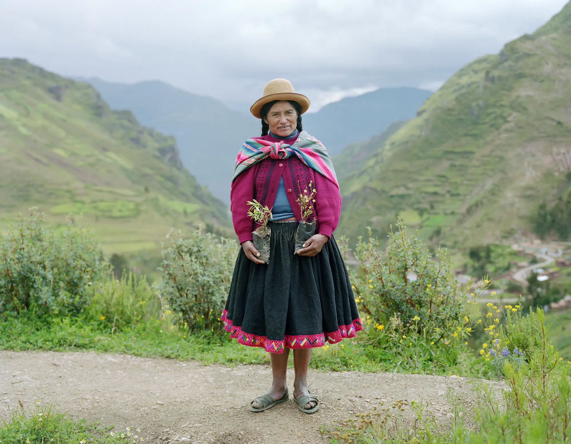 Carmen Sicus, Qeswa healer, with plant medicines, Pisaq, Peru