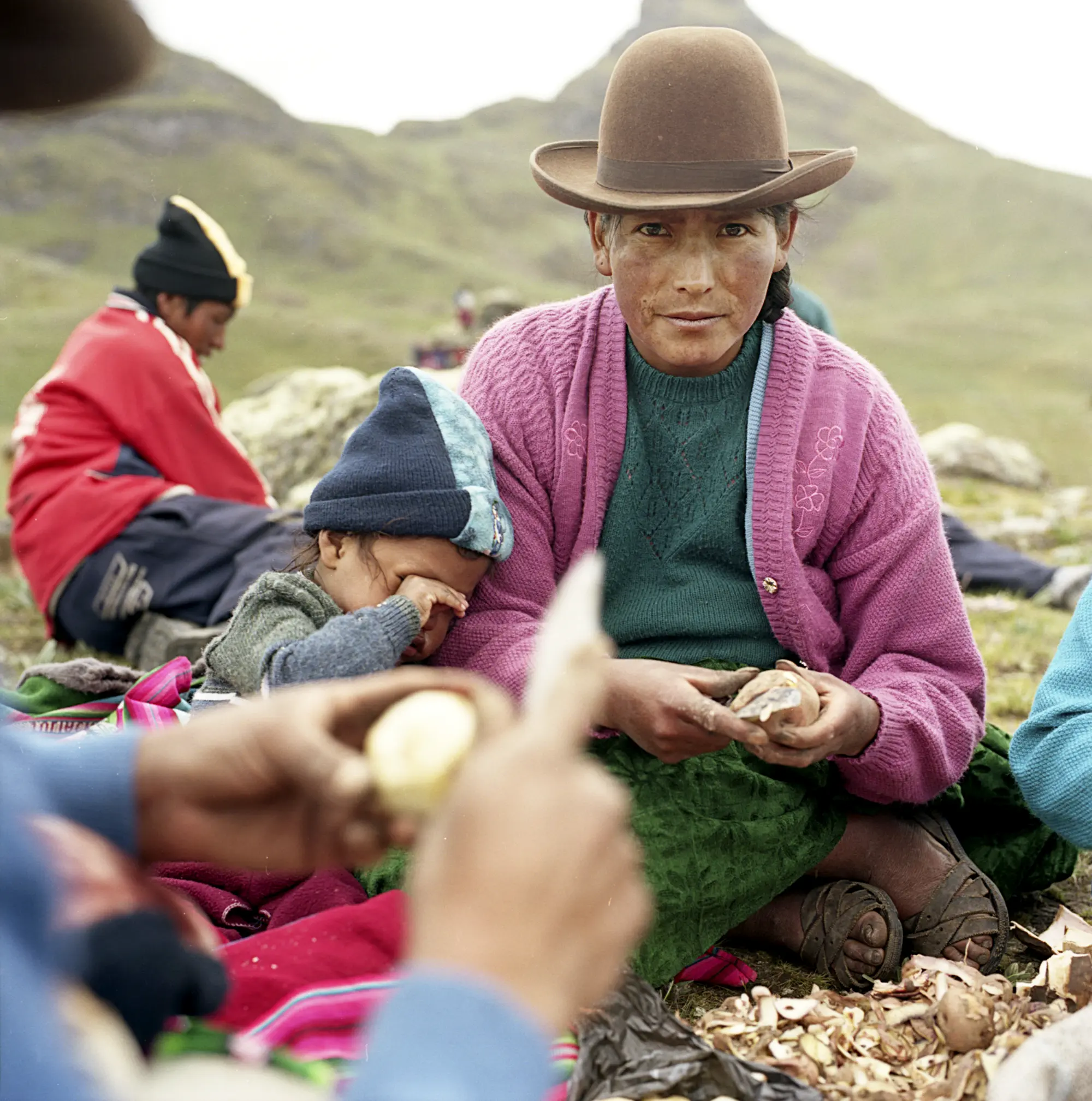 Peeling potatoes, parque de las papas, Pisaq, Peru